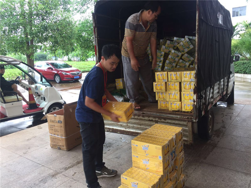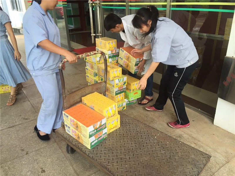 (上圖為員工領(lǐng)取防暑降溫用品)