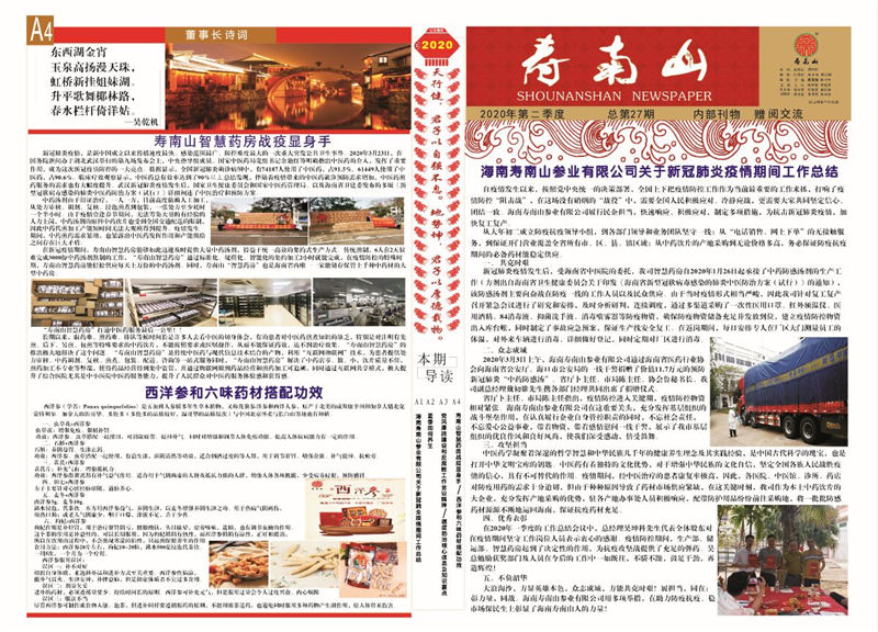 海南壽南山參業(yè)有限公司關(guān)于新冠肺炎疫情期間工作總結(jié)